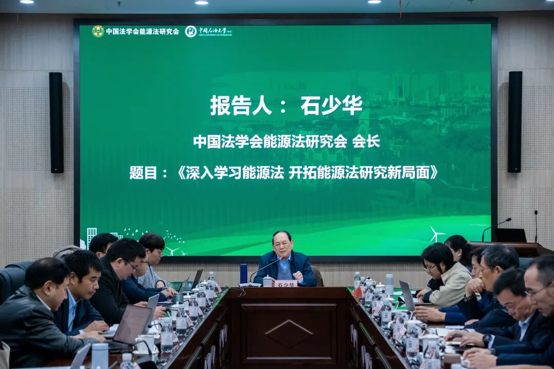 中国法学会能源法研究会石少华会长出席开幕式并作主旨报告,中国石油大学(华东)副校长张玲玲、中国法学会能源法研究会副会长、中央财经大学二级教授曹富国出席开幕式并致辞。开幕式由中国石油大学(华东)文法学院院长王学栋教授主持。