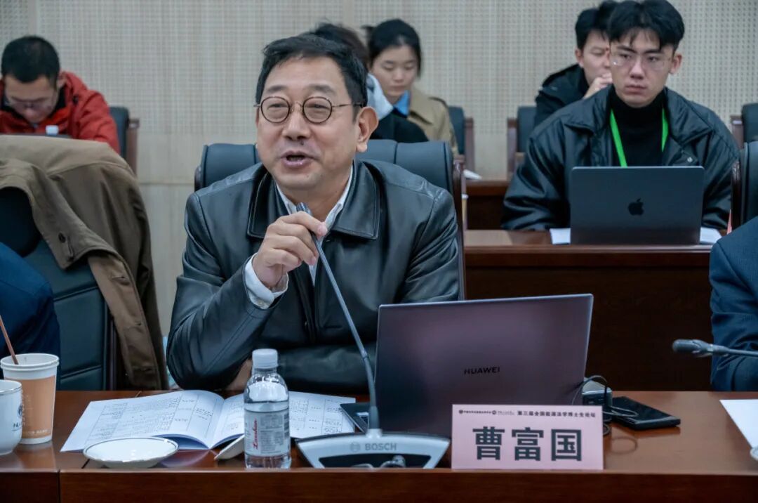 曹富国代表中国法学会能源法研究会对第三届全国能源法学博士生论坛的成功举办表示祝贺,并对中国石油大学(华东)连续承办论坛给以高度肯定。曹富国表示,本届论坛恰逢《能源法》实施和能源高质量发展的历史性重大机遇,可谓恰逢其时,意义重大。他同时勉励同学们既要仰望星空关注“双碳”目标、绿色发展与能源转型等宏观战略和理论前沿,又要脚踏实地研究《能源法》落地实施、能源市场规制,能源安全保障等具体制度与实践难题。