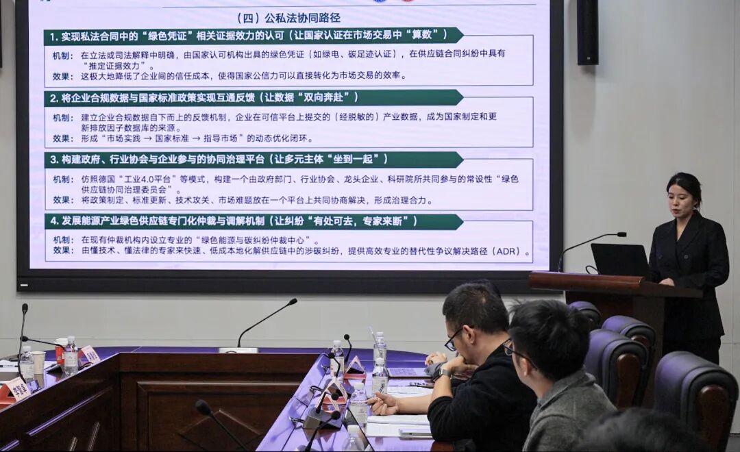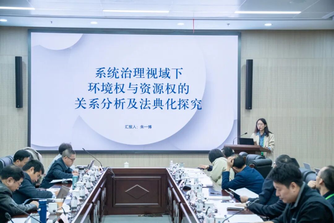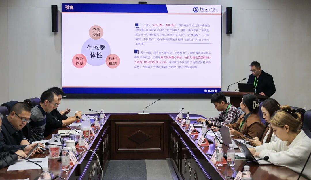 主旨发言环节由《北方法学》学科编辑、黑龙江大学法学院陈晨副教授主持。中国石油大学(华东)博士研究生王梦科、南昌大学博士研究生刘柯、福建师范大学博士研究生朱一博、中国石油大学(华东)博士研究生张子乐围绕“我国能源普遍服务制度的法律关系构造及解释”“能源市场和碳市场有效衔接的法治保障研究——以绿证市场为中心环节”“系统治理视域下环境权与资源权的关系分析及法典化探究” “《能源法》实施背景下涉碳检察公益诉讼可诉性研究”依次作主题汇报。中南财经政法大学法学院曹富国教授,中国石油大学(华东)文法学院荣誉教授牟效毅,《荆楚法学》编辑黄绍坤博士分别进行了精彩点评。