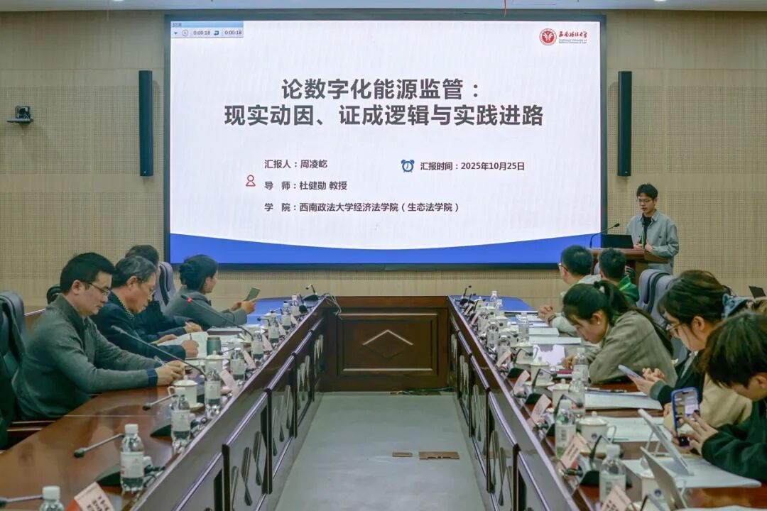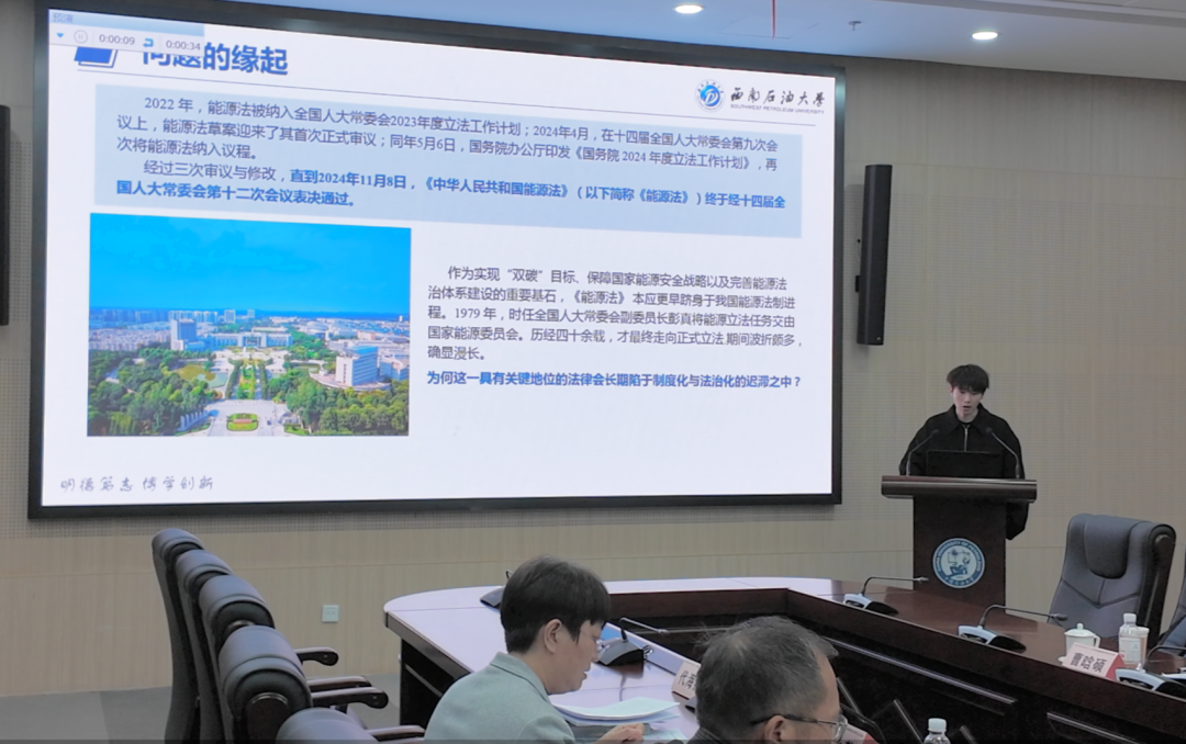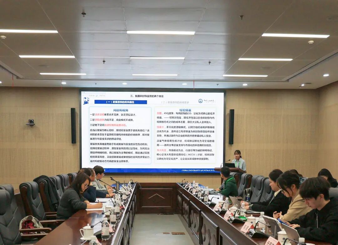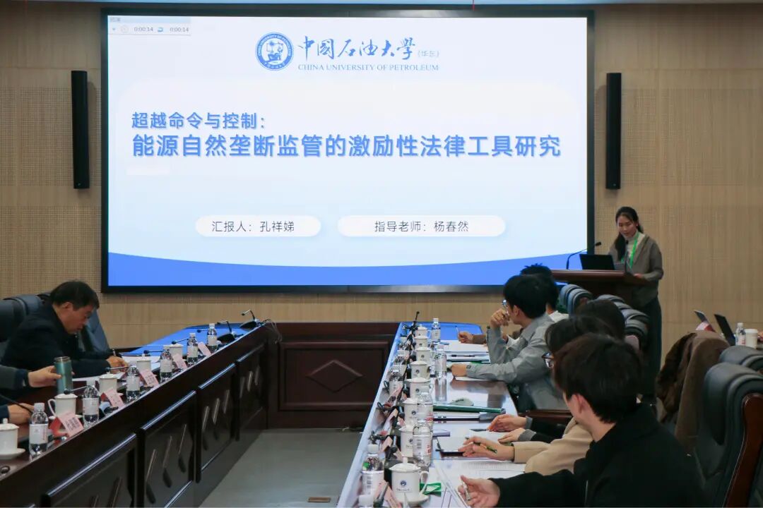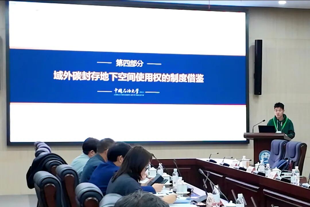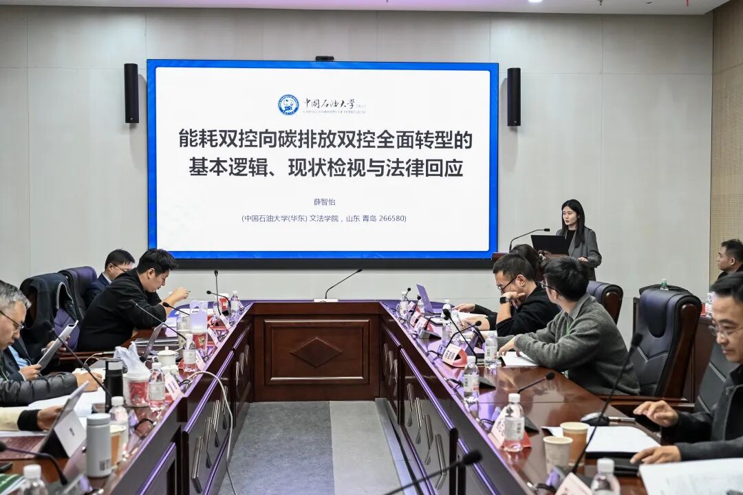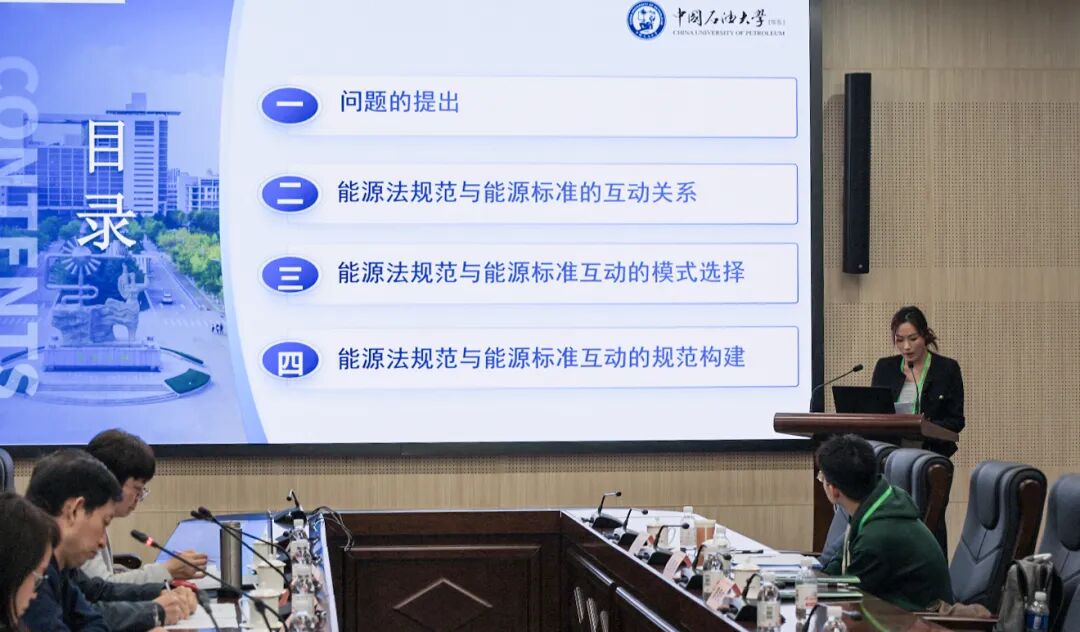 第二单元由中国石油大学(华东)文法学院秦勇教授主持。中国石油大学(华东)博士研究生牛明璐、中国石油大学(华东)博士研究生亓国萃、中国石油大学(华东)硕士研究生曹晗硕、西南石油大学硕士研究生陈朝围绕“我国碳封存监管法律制度研究”“能源法规范与能源标准互动的关系、模式及路径”“我国碳封存地下空间使用权的制度选择与实现路径”“我国《能源法》立法逻辑审视与完善进路”依次做主题汇报。中国海洋大学法学院田其云教授、中国社会科学院法学研究所岳小花副研究员、中国石油大学(华东)文法学院谌爱华副教授进行点评。